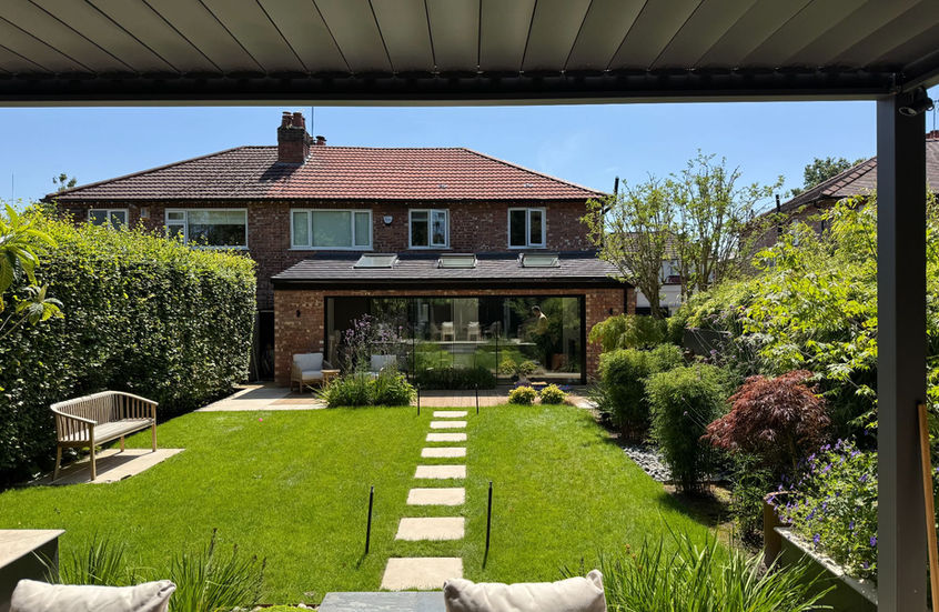 When Rachel and Ryan came to us, their Cheadle Hulme garden was spacious and private, but felt dated, with crazy paving, curly topiary and a lumpy lawn which didn’t match their vision.